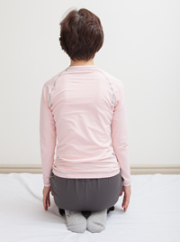 立っている状態、正座している状態でも背中が伸びて姿勢不良が改善され、骨盤、腰椎、胸椎、頚椎と正常な位置に収まってきました。左右の肩の高さ、肩甲骨の位置も整体前より揃い、首をそらしてみると、整体前より動きがよくなってきました。